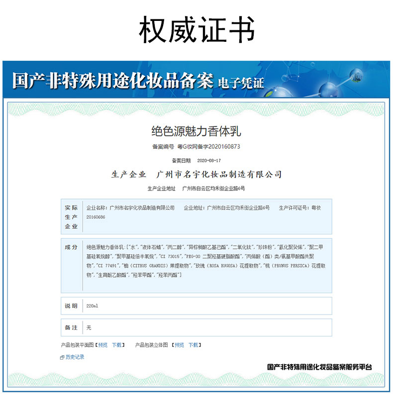 使用方法:潔膚爽膚、潤(rùn)膚后,取適量薄涂于全身,輕拍至吸收。